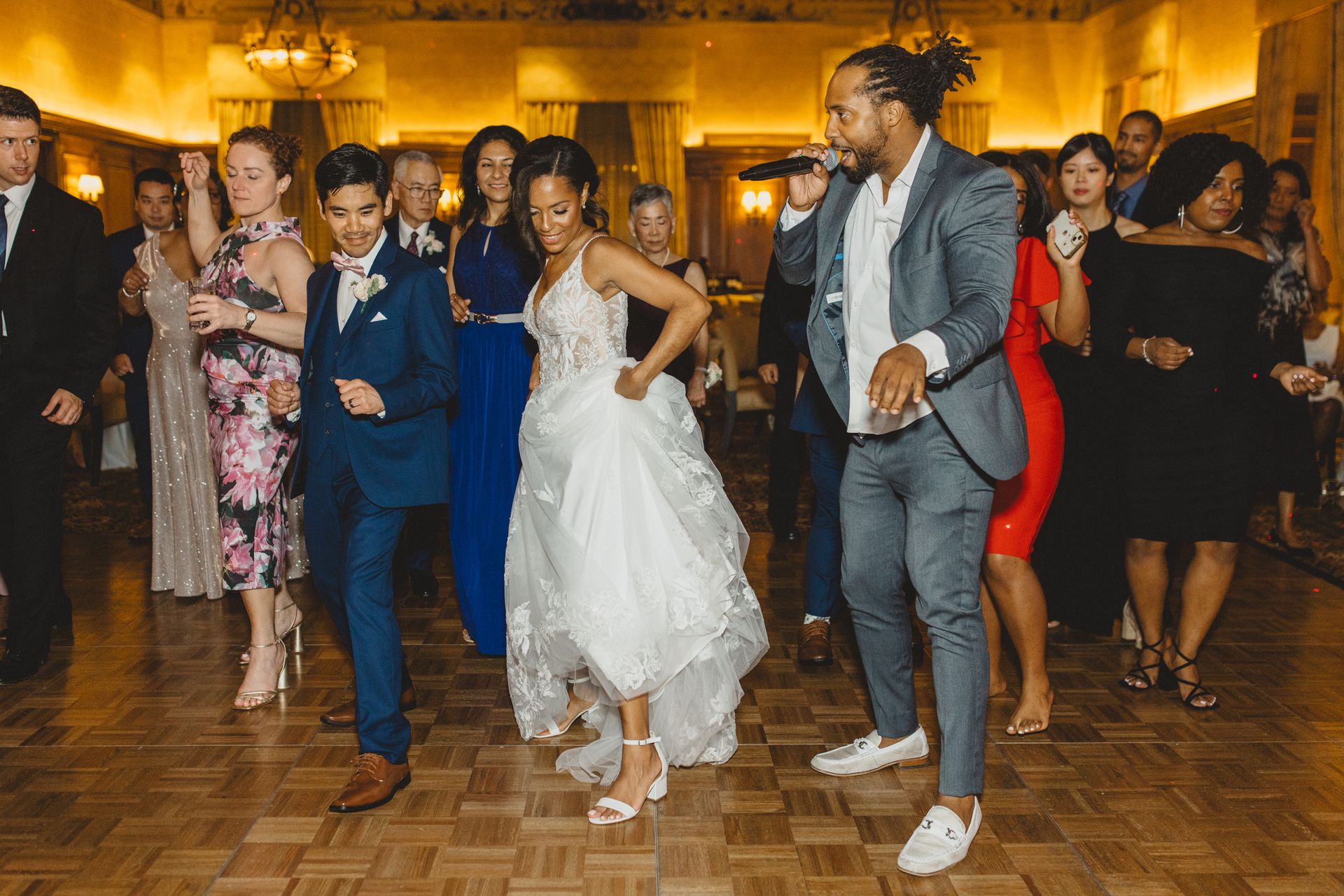 Aaron & Karyn’s wedding at The Detroit Athletic Club was a blast for us to play! Seeing their faces light up with smiles several times during the evening was something special. Key smile moments happened when they cut their cake, when they shared their first dance to the band playing If I Ain’t Got You by Alicia Keys, to the smiles from the newlyweds and all their guests when we played The Hustle to My Eyes Don’t Cry No More by Stevie Wonder.